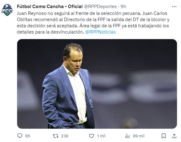 Terminado el partido con Venezuela, Juan Reynoso indicó que mantenía su postura de seguir en el cargo y que nadie se había comunicado con él sobre una posible salida.