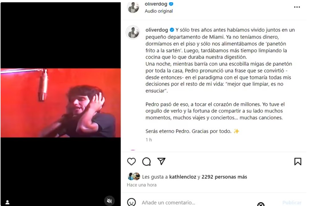 “Pedro pasó de eso, a tocar el corazón de millones. Yo tuve el orgullo de verlo y la fortuna de compartir a su lado muchos momentos, muchos viajes y conciertos… muchas canciones. Serás eterno Pedro. Gracias por todo”, Concluyó el mensaje con un emotivo “Serás eterno Pedro. Gracias por todo”.