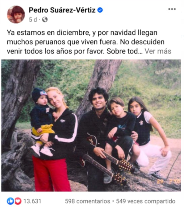 Buenos días amigos y feliz sábado para todos.” Había publicado Pedrito Suarez Vertiz
